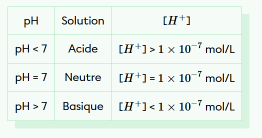 Le pH est une manière d'exprimer la concentration en ions H+ dans une solution aqueuse. Cette échelle permet d'exprimer de faible valeur de concentration de manière plus pratique. Ainsi, les mesures du pH correspondent à différentes valeurs de concentrations en ions H+.
