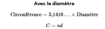 Pour résoudre cela, il faut savoir que la circonférence d’un cercle se calcule à partir du diamètre avec la formule suivante :