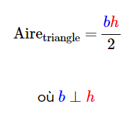 Tout d'abord, rappelle-toi que la formule d'aire d'un triangle est :