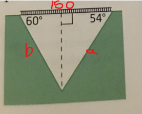Nous savons que les angles de 60° et de 54° forment chacun un angle droit avec le pont, ce qui signifie que les parois du précipice forment chacune un triangle rectangle avec le pont.
