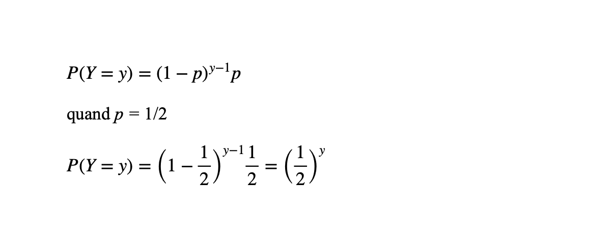 La moyenne de cette distribution est 1/p qui, pour p = 1/2, est donc de 2.