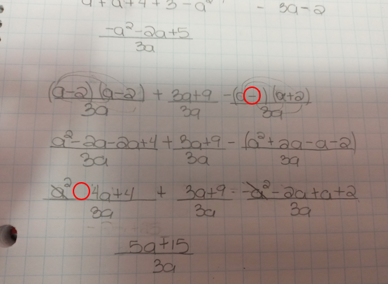 Tu dois faire plus attention aux signes de tes équations. Par exemple, voici des erreurs qui ont changé ta réponse :