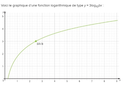 Puisque y= 3 log_10 (bx) et que cette fonction passe par le point (5/2, 3)