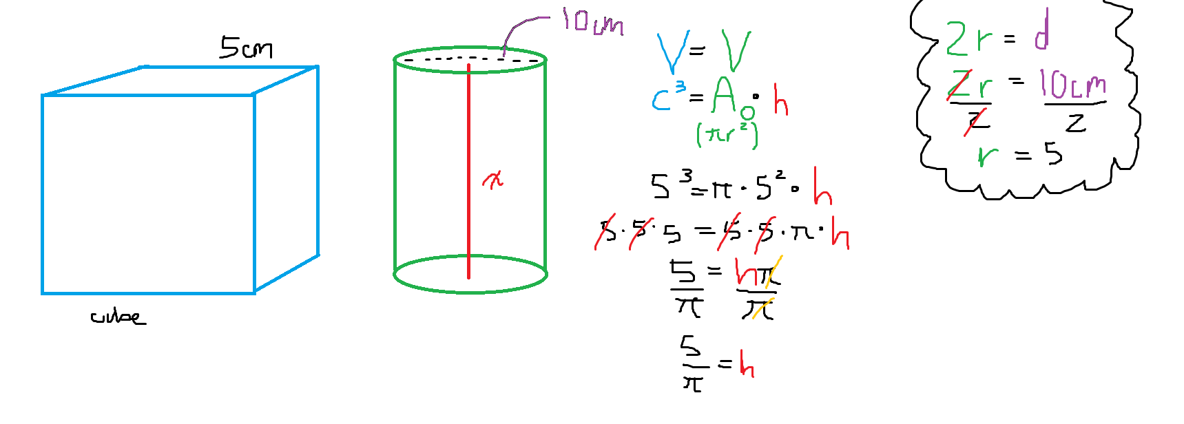 Une méthode que j'aime bien, c'est de faire égaller les deux volumes et puis isoler ta variable.