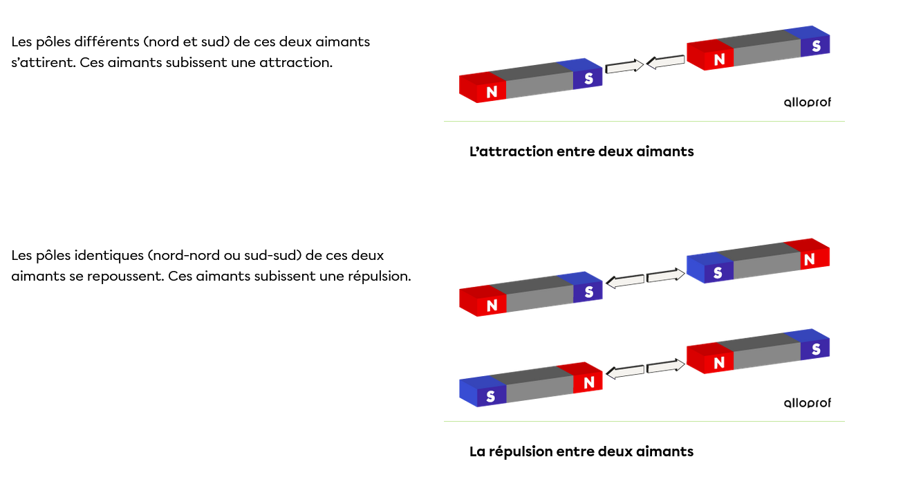 La répulsion se fait avec deux côtés identiques sur l'aimant, comme pour les négatifs et positifs.