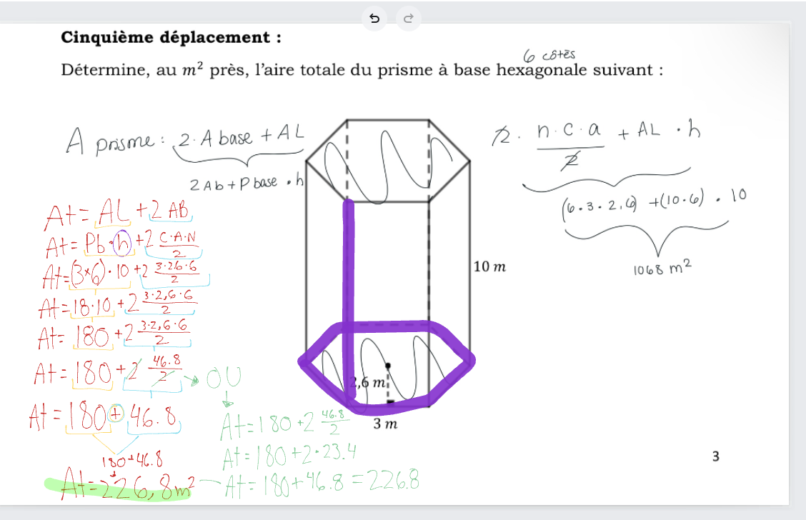 J’ai de la difficulté avec ce numéro.. dans mes calculs, ça me donne 1068 m2 mais le corrigé dit que la réponse est de 227 m2.