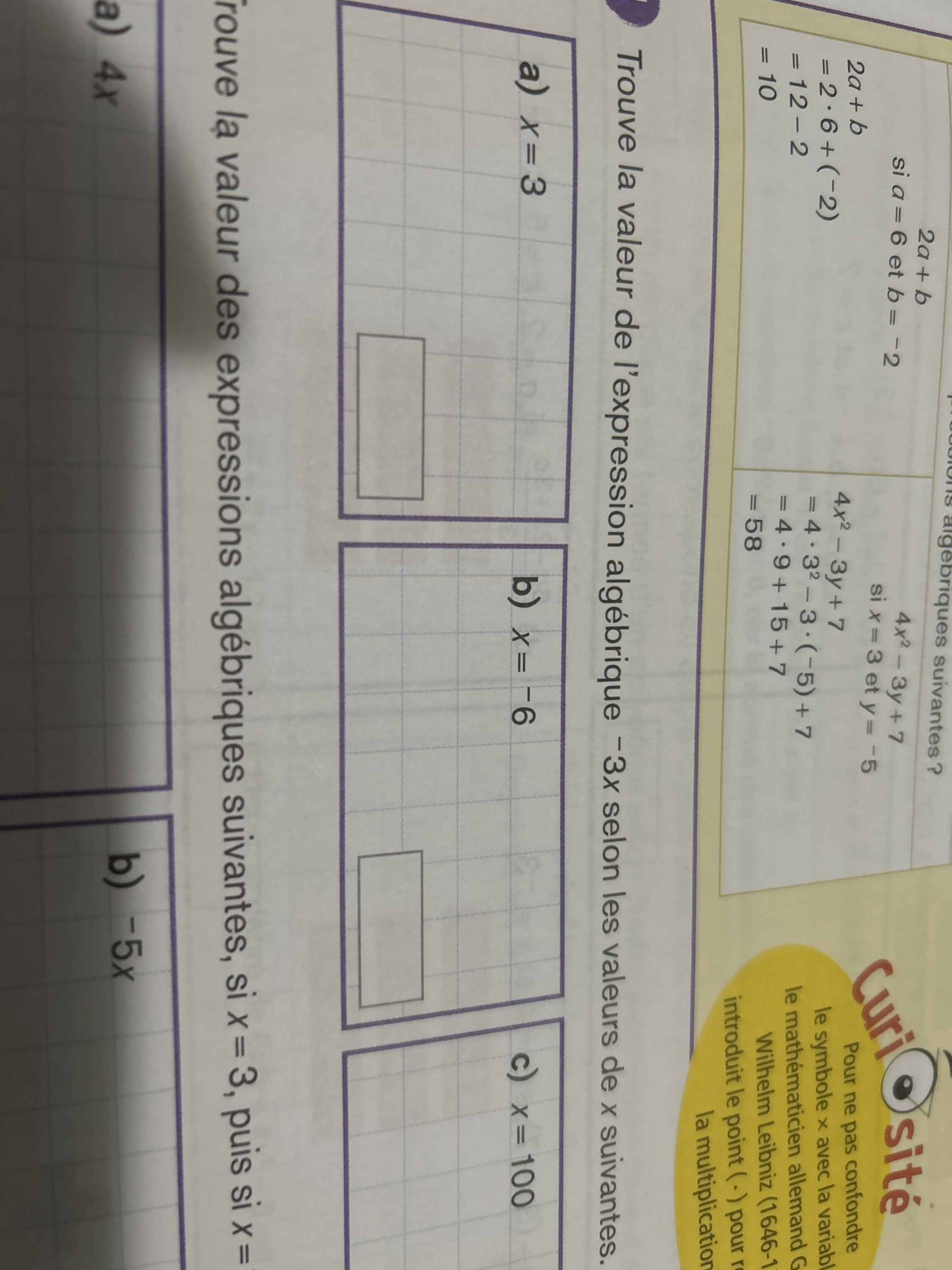 Dans la question, il y a une expression. Tu dois donc prendre l’expression et remplacer x par la valeur donnée en a.