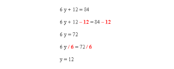 Pour isoler Y, il faut d'abord éliminer le +12 du côté gauche de l'équation. Pour cela, on soustrait 12 des deux côtés. L'équation est maintenant : 6y = 72. Pour isoler Y, il suffit de diviser les deux côtés de l'équation par 6.