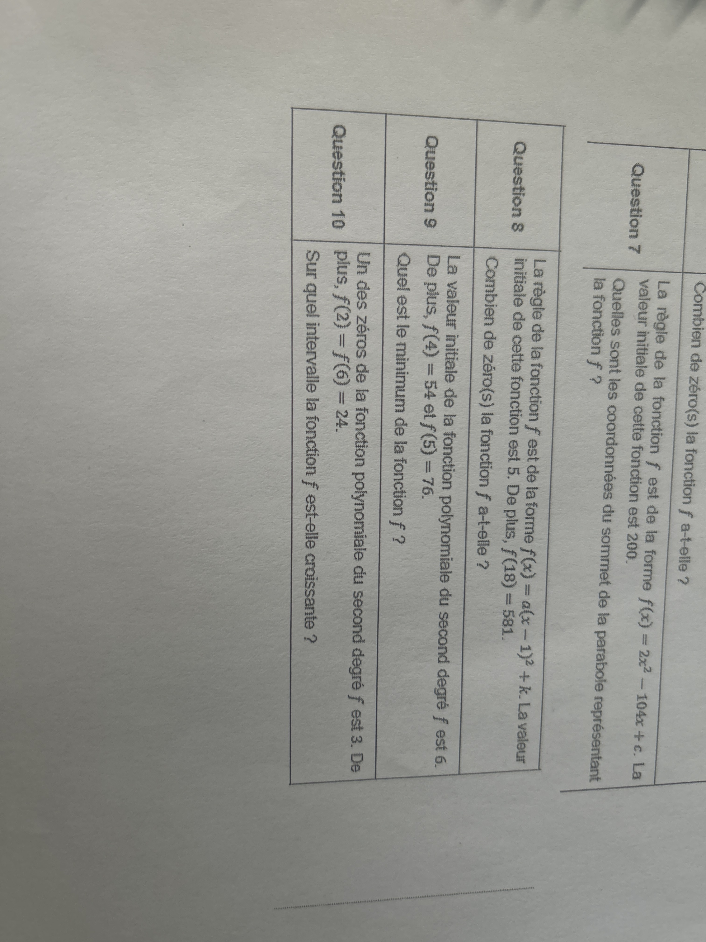 Secondaire 4 • 6jJe ne comprends pas la question 8,9 et 10 j’ai vu les réponses mais, je ne comprennes toujours pas la logique comment on fait pour trouver la réponse je suis perdu la valeur initial n’est elle pas le a?