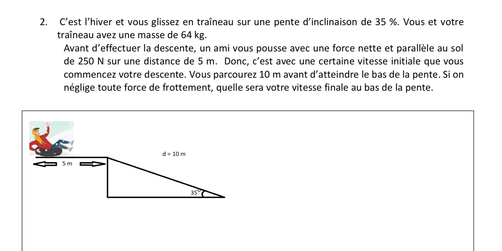 Secondaire 5 • 2jBonjour j’essaye de trouver la grandeur de la force motrice dans un devoir j’ai comme données que la masse est de 2100Kg Ff=1000N l’accélération est de 1,50m/s carré l’angle est de 10 degré donc la force gravitationnelle est de 20580N à 270 degré et la force de frottement est de 1000N à 180 degré mais je sais plus quoi faire après