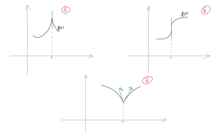 Je suis au cégep et nous avons commencé les dérivées dans le cadre du cours de calcul différentiel. J'ai toutefois une petite quelque chose que je n'arrive pas a comprendre: Pourquoi est ce que dans le graphique 1 la tangente est verticale, mais dans le graphique 2 on a besoin de 2 tangente? C'est la ''même forme''.Merci d'avance!