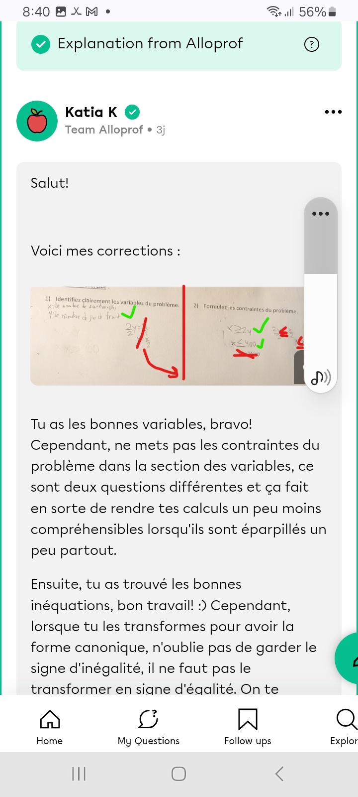 Secondaire 5 • 1mVoilà alloprof et bonne journée. Encore désolé pour l frustration j'ai un examen de math donc c'est normal que je sois stressé.