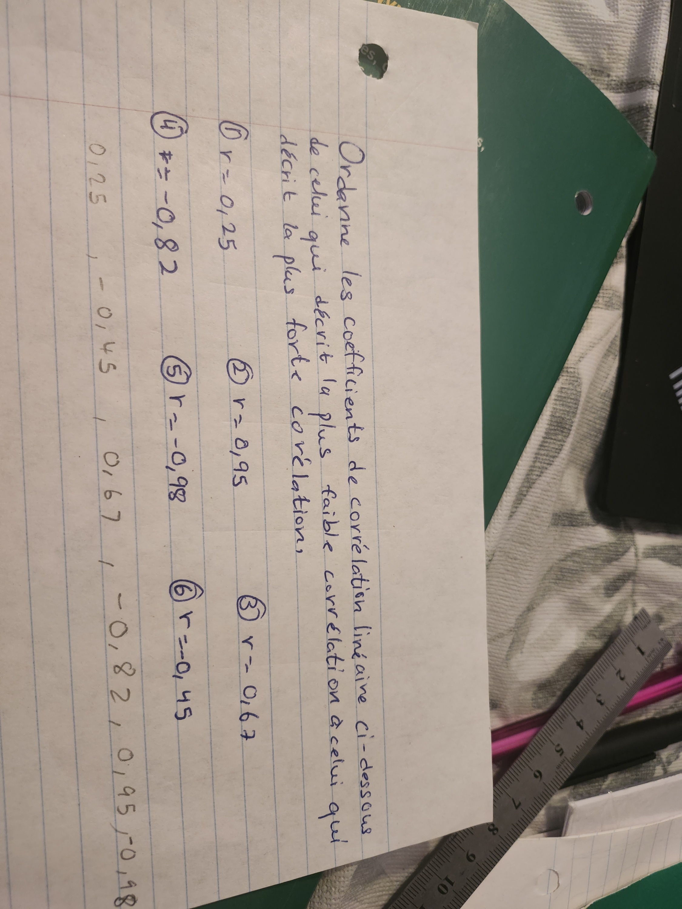 En maths nous voyons les équations de forme y = ax + b qui donnent le taux de variation. Ce que j'ai joint ici est une capture d'écran du corrigé de mon enseignante. Je ne comprends pas pourquoi dans ce numéro la réponse est -0,5 au lieu de 0,5. Est-ce que quelqu'un pourrait m'expliquer... Mercii!!