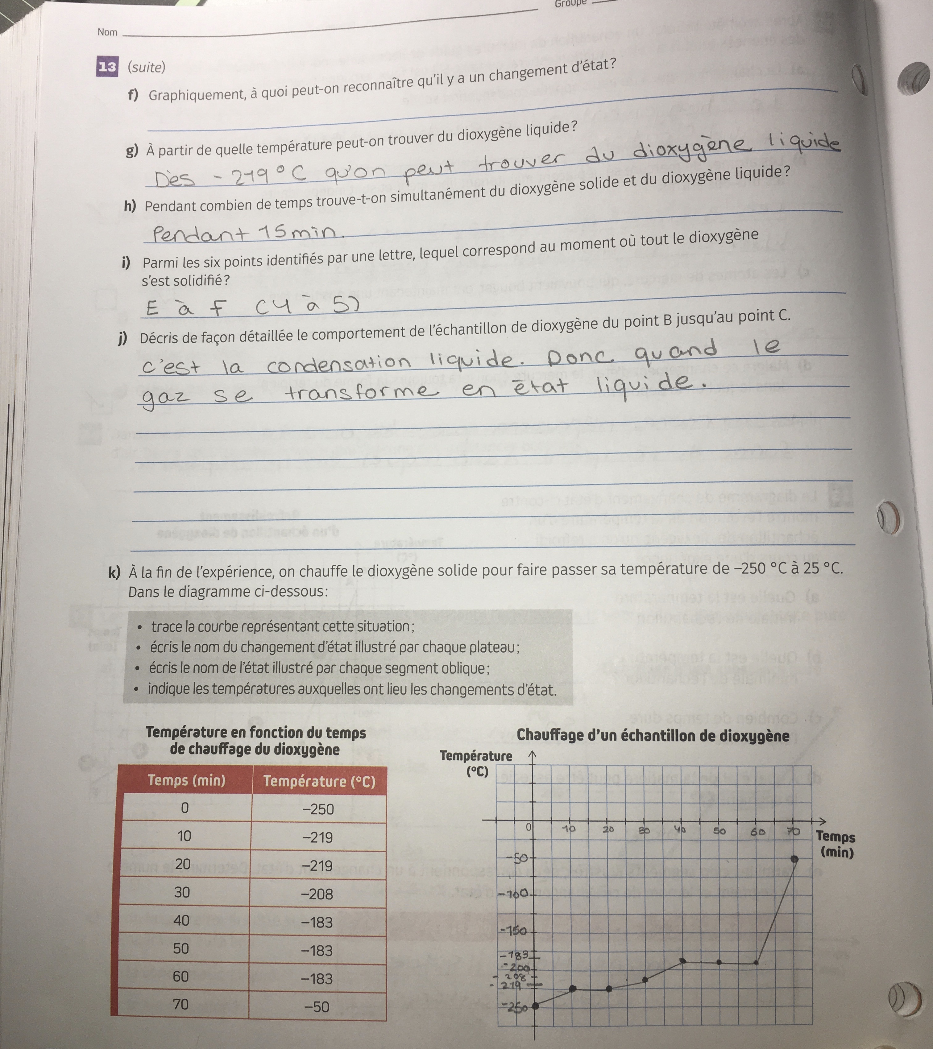 En fait, je viens d'apprendre la matière, les trois états de matière ainsi que les chnagements d'état. J'ai fais les exercices, mais je suis bloquée sur cette question, je ne comprends pas si le13 d), e) et k), j 'ai bien expliquée et bien compris. J'ai vraiment de la doute,pourriez-vous s.v.p m'aider ?Merci beaucoup de votre aide : D